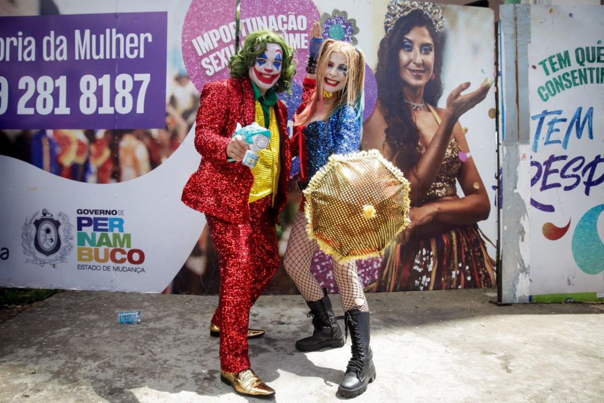 Segundo Alcimar, o casal passou a frequentar o Carnaval fantasiado após a pandemia e se dedica à confecção de cada detalhe das roupas. “Começamos a vir para o carnaval fantasiados depois da pandemia. A Arlequina é uma vilã, mas que as crianças amam. Eu tento levar o melhor da Arlequina para as crianças. É gratificante e muito emocionante quando pedem para tirar foto com a gente. As crianças, elas não mentem, elas são sinceras. Então, assim, quando você parece realmente com o personagem, elas amam, de coração”, afirma, destacando que produz os figurinos junto com o marido.