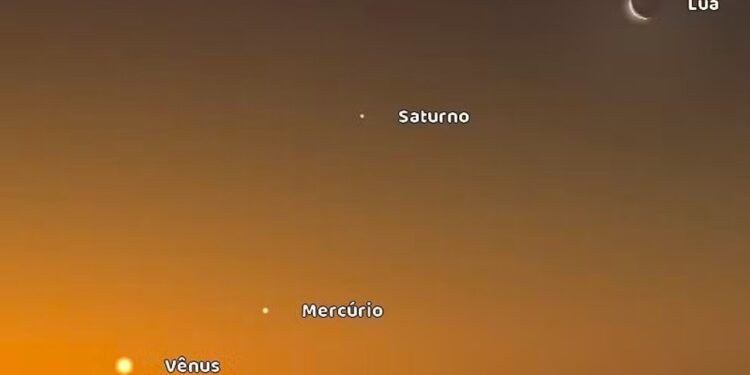 Desde o dia 18, Vênus, Mercúrio, Saturno e Júpiter surgem logo após o pôr do sol. A configuração segue até o sábado, dia 28. Netuno e Urano também participam do cenário, mas, nesses casos, apenas telescópios permitem a visualização.