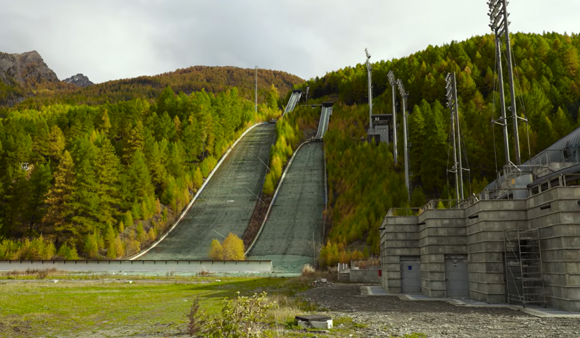 Situação semelhante ocorre na rampa de salto de esqui em Pragelato. Projetada para acomodar milhares de torcedores durante as disputas olímpicas, o local atualmente apresenta áreas tomadas por vegetação e grafites.
