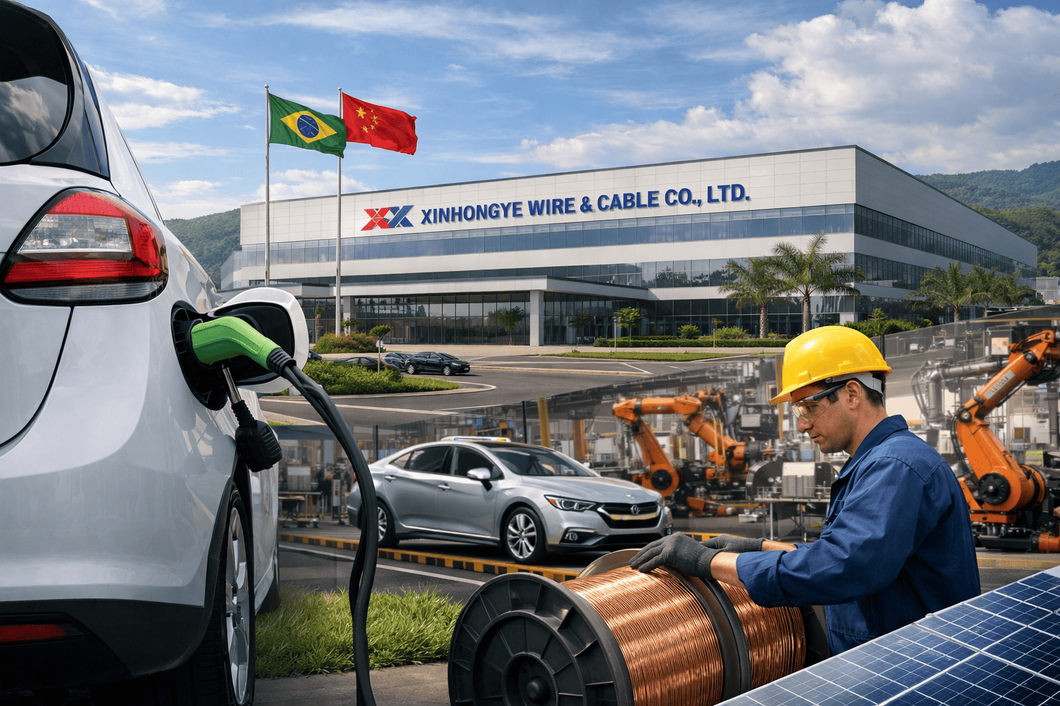 Uma das maiores fabricantes chinesas de cabos para veículos elétricos, energia solar e tecnologias industriais avançadas planeja instalar uma super fábrica no Brasil, na cidade de Blumenau (SC). A empresa Xinhongye Wire & Cable Co., Ltd. assinou um termo de intenção com a Prefeitura local durante visita oficial do prefeito às cidades chinesas de Changzhou e Wuxi.