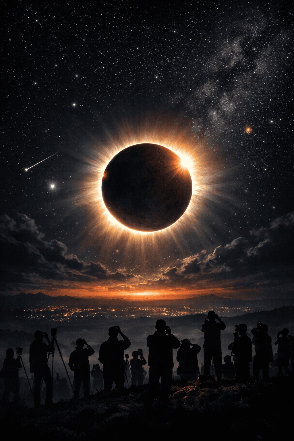 Esse fenômeno ocorre quando a Lua se posiciona exatamente entre a Terra e o Sol, bloqueando completamente a luz solar. Durante esse alinhamento perfeito, a claridade desaparece temporariamente, dando lugar a uma escuridão semelhante à noite, mesmo em pleno dia. Em alguns casos, é possível até observar estrelas e planetas no céu, algo extremamente incomum fora do período noturno.