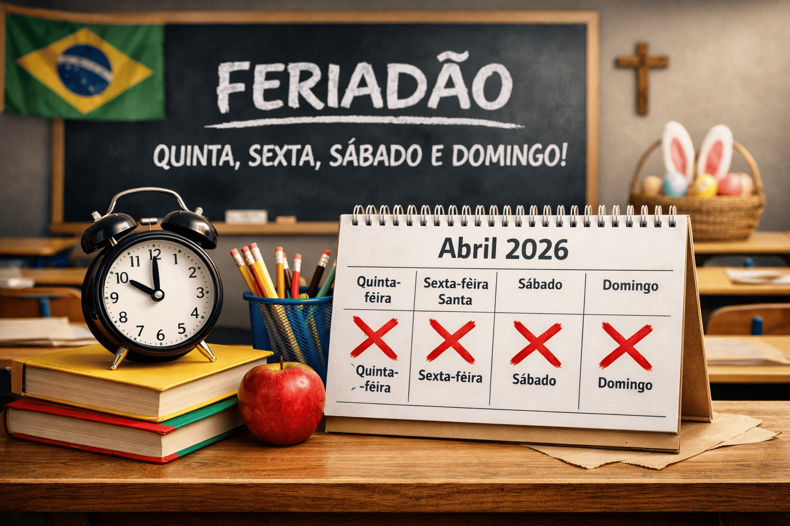 Estudantes brasileiros já podem se preparar para um dos primeiros grandes descansos prolongados de 2026. A combinação da Semana Santa com decisões adotadas por redes de ensino deve garantir quatro dias seguidos sem aulas, entre quinta-feira, sexta-feira, sábado e domingo, formando uma verdadeira “ponte” no calendário escolar.