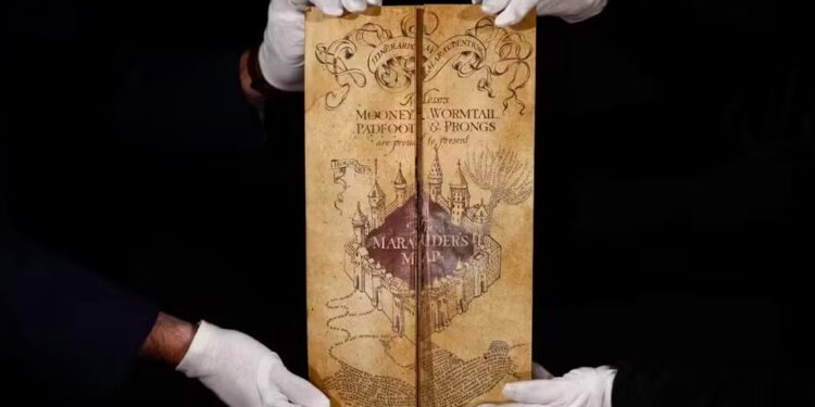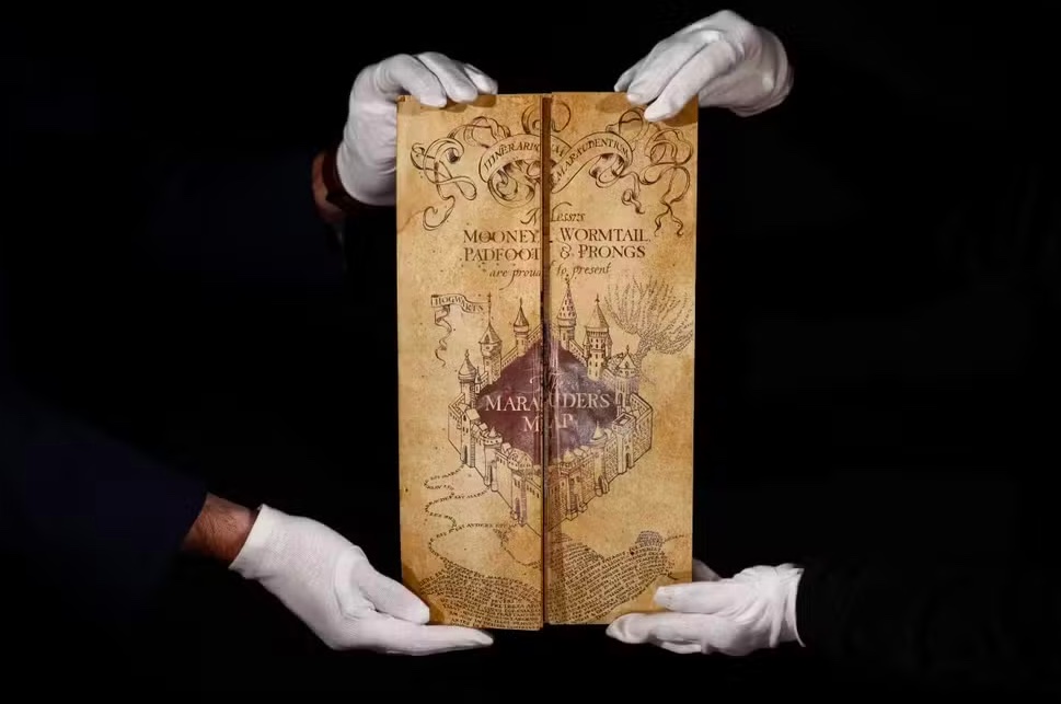 Entre os itens ligados à saga Harry Potter está o Mapa do Maroto, avaliado em até 80 mil dólares. A peça integra o grupo de objetos mais procurados desta edição.