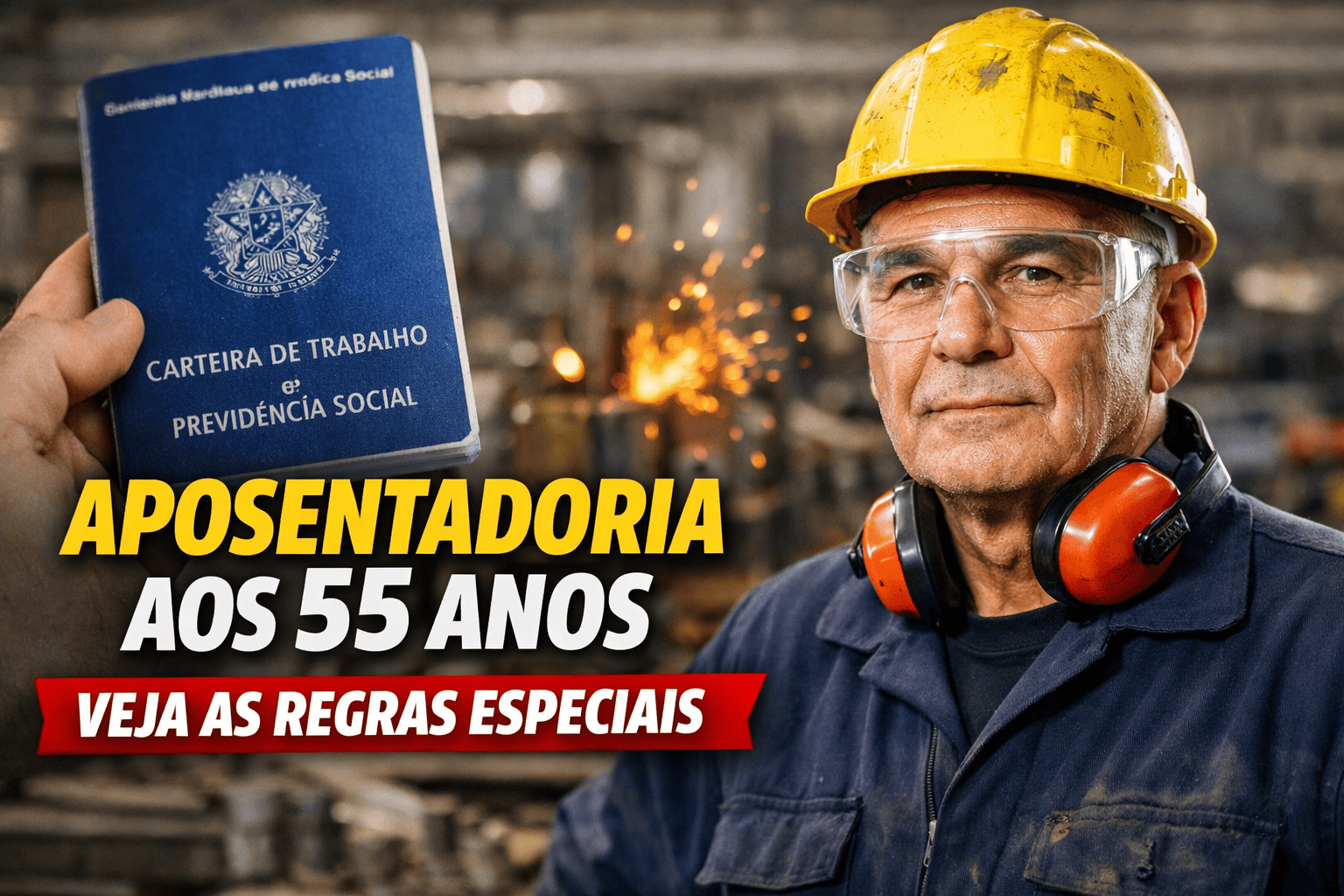 A aposentadoria aos 55 anos é destinada principalmente a trabalhadores que atuaram em atividades de altíssimo risco por pelo menos 15 anos, como mineração subterrânea. Para quem exerceu funções consideradas de risco médio ou baixo, a idade mínima costuma ser maior, podendo chegar a 58 ou 60 anos.