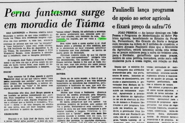 O primeiro texto assinado pelo jornalista sobre o suposto fenômeno foi publicado no dia 1º de fevereiro de 1976. “Os gritos de uma mulher foram escutados, misturados com uma pancadaria, voz de homem furioso berrando. De repente, a mulher foi atirada na rua, bateu com a testa no chão, quebrou a cabeça”, diz o jornal.