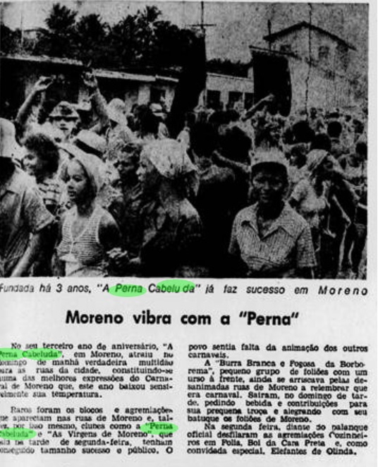 Em 1976, o Diario já noticiava o sucesso da Perna Cabeluda no carnaval de Pernambuco. A figura virou cordel, música e até troça carnavalesca. “Vou dizer uma coisa horrível: a cultura brasileira em relação ao chamado ‘corno’ é muito ampla e, de qualquer maneira, provoca risada”, brinca Carrero.