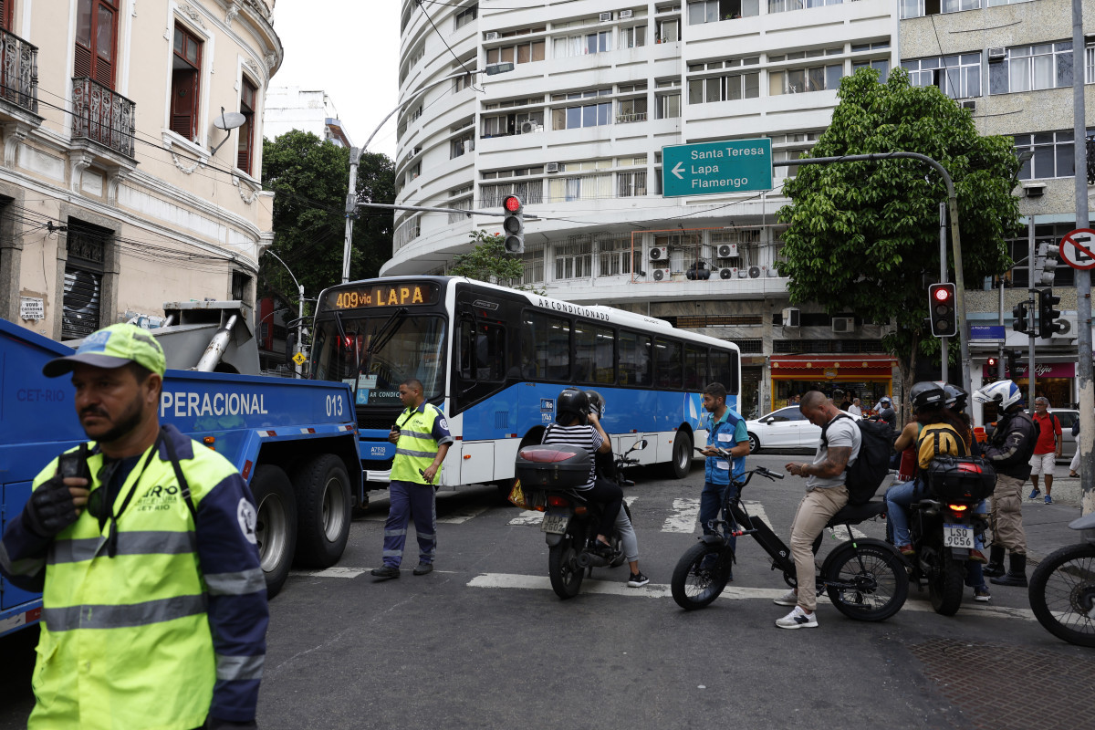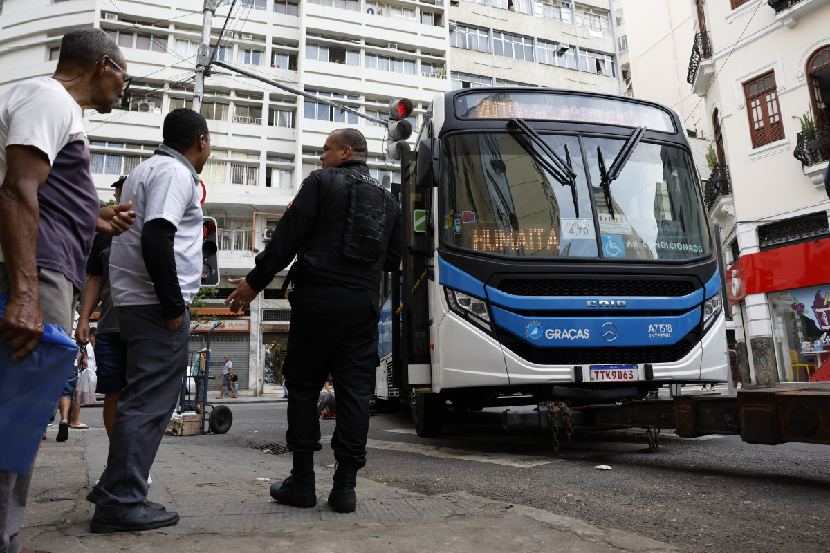 Durante operação policia contra o Comando Vermelho, bandidos renderam motorista da linha 409 na Rua do Riachuelo, na Lapa, e obrigaram a atravessar na via, levando a chave (Fernando Frazão/Agência Brasil)