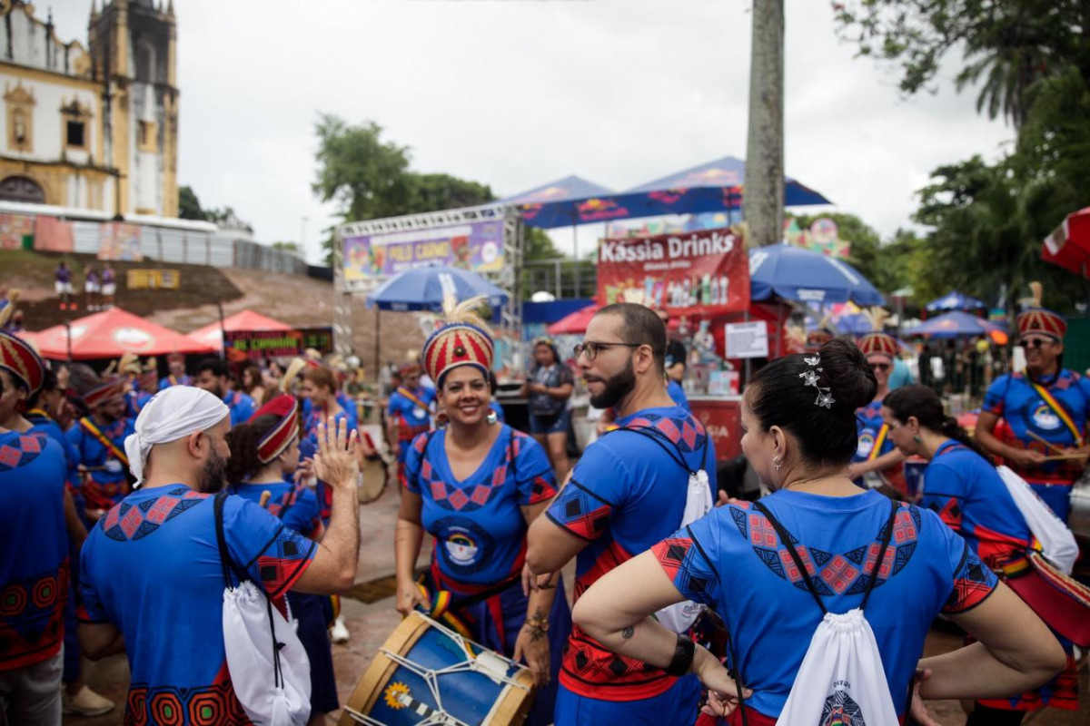 Além do público que começa a ocupar as ladeiras da cidade, grupos culturais também iniciam seus desfiles. Um dos cortejos é do Batuques de Pernambuco, grupo percussivo que brinca há mais de duas décadas no carnaval.