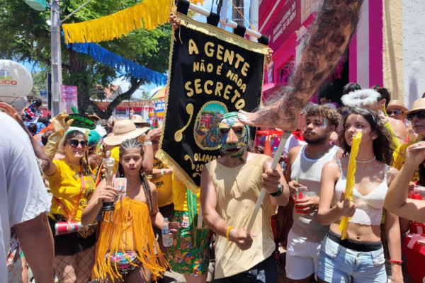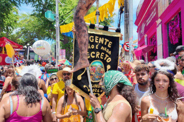 Neste ano, a troça levou às ruas um carro alegórico inspirado no filme "O Agente Secreto", produção que recentemente ampliou a projeção nacional da agremiação. A concentração começou às 9h, no Largo da Prefeitura, com saída por volta das 10h. O cortejo seguiu pelas ladeiras da cidade alta, passando pela Rua 27 de Janeiro e pela sede da troça, embalado por três orquestras e pelo ritmo vibrante do frevo.