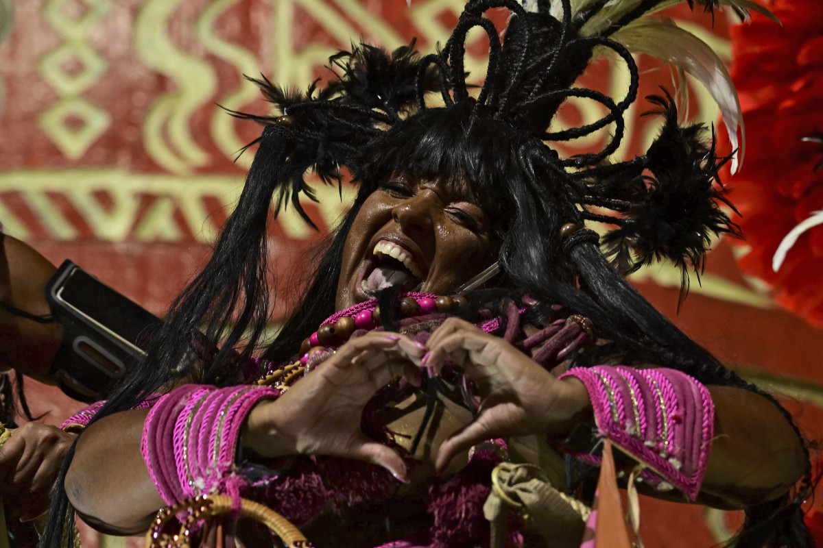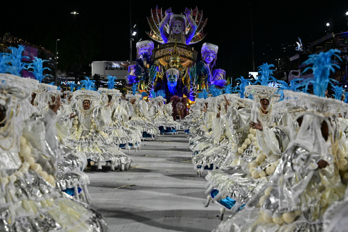 A Acadêmicos de Niterói abriu a primeira noite de desfiles do Grupo Especial do Carnaval do Rio de Janeiro. A agremiação foi campeã da Série Ouro em 2025, levou para avenida um samba-enredo interpretado por Emerson Dias (Pablo Porciuncula/AFP)