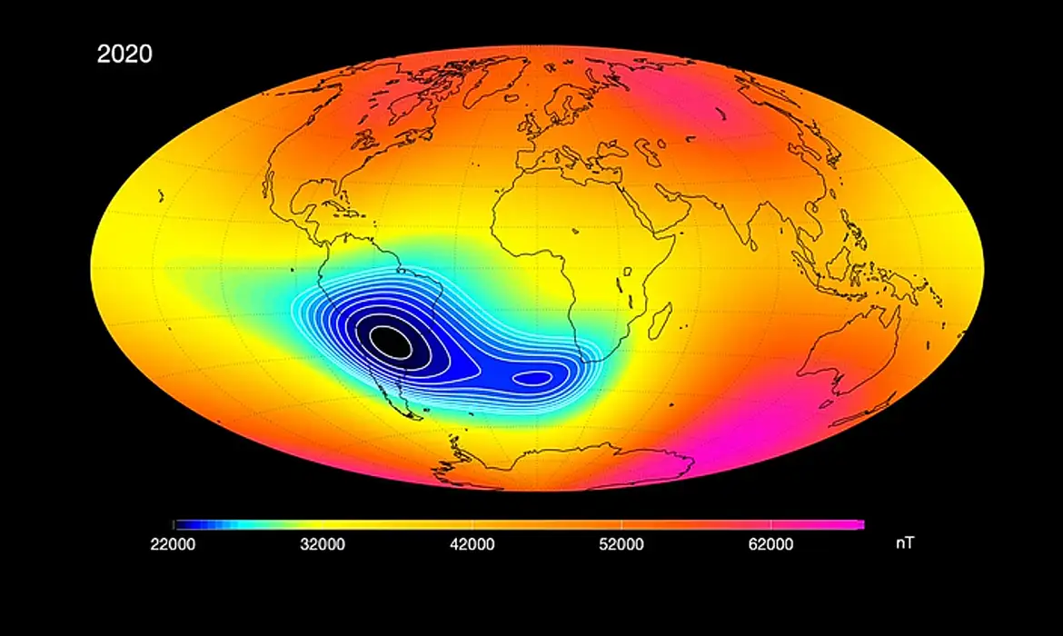 A Agência Espacial Americana (NASA) voltou a alertar sobre um fenômeno que vem se intensificando na América do Sul: a Anomalia Magnética do Atlântico Sul (AMAS). Essa é uma região onde o campo magnético da Terra apresenta menor intensidade, tornando a área mais exposta à radiação cósmica e às partículas solares.