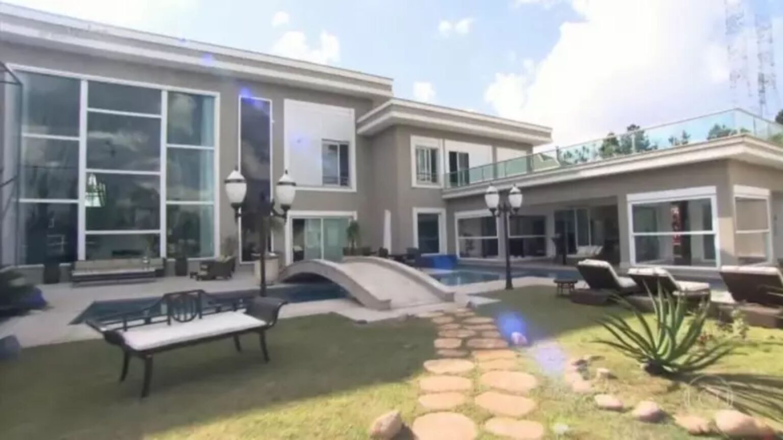 O imóvel conta com elevador panorâmico, cinema particular, academia equipada, quadra de tênis e até um lago artificial. Um dos destaques é o lustre da sala principal, estimado em R$ 200 mil. A casa ainda reserva um espaço exclusivo para a coleção de cristais da família. Apesar de já ter sido colocada à venda, Luciano sinalizou recentemente que pretende reformar o imóvel e seguir morando no local.