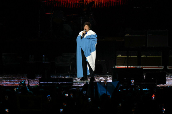 Vestido de preto e com imagens de bombardeios projetadas no palco, o presidente argentino, Javier Milei, cantou músicas de rock e uma canção folclórica judaica para apresentar seu livro sobre o "milagre" argentino, enquanto espera um resgate financeiro dos Estados Unidos.