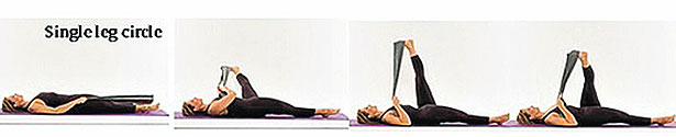 Execução do movimento: inspire e, durante a expiração, contraia o abdômen, ativando o músculo transverso do abdômen, flexione o quadril, abduzindo-o, e, inspirando, aduza o quadril, estendendo-o até apoiar o membro inferior no solo e fechar o círculo.