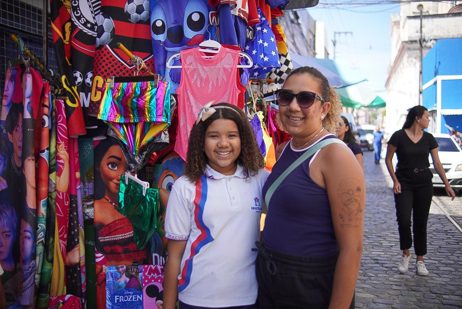 A empreendedora Erika de Lima, de 39 anos, levou a filha Ellen de Lima, de 11 anos, para a escolha das fantasias que pretendem usar nas próximas festas carnavalescas, como o evento de carnaval da escola e blocos em Olinda. Erika conta que a filha está em busca das fantasias de personagens como Moana e Tiana, duas personagens da Disney. Já ela, ainda não escolheu quais serão as caracterizações para o carnaval deste ano.