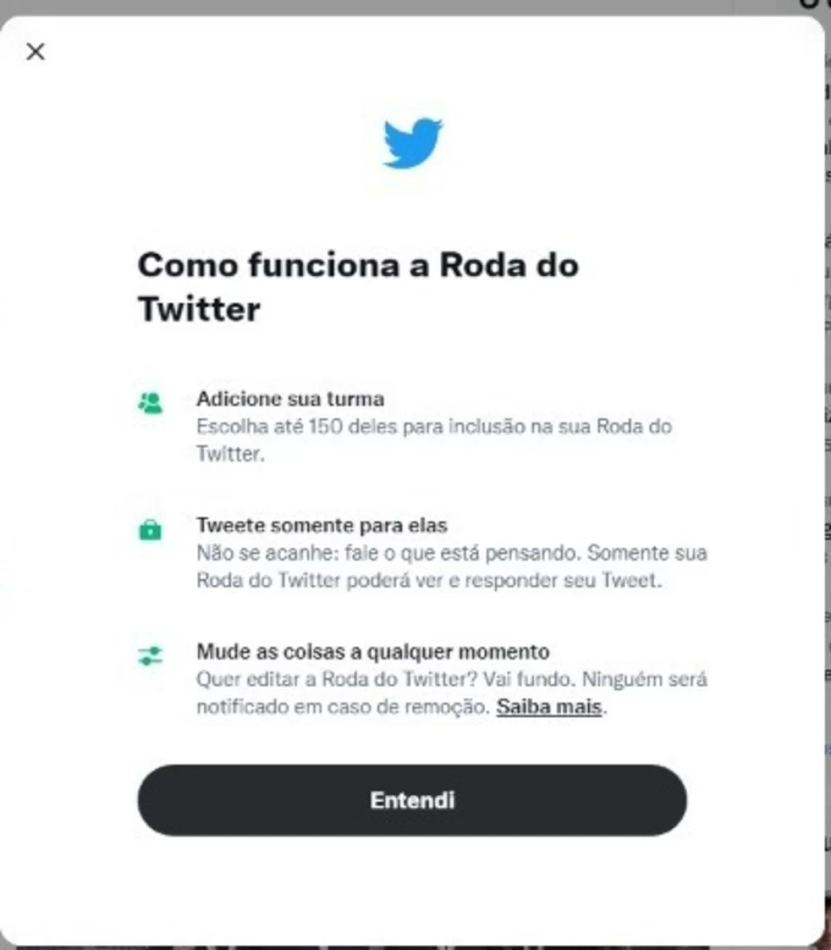 O Twitter liberou, na terça-feira (30), o recurso "Roda" para todos os usuários. A funcionalidade permite escolher até 150 pessoas para visualizar tuítes exclusivos. A opção é parecida com a 'Melhores Amigos' do Instagram e estava em fase de teste desde maio do ano passado.