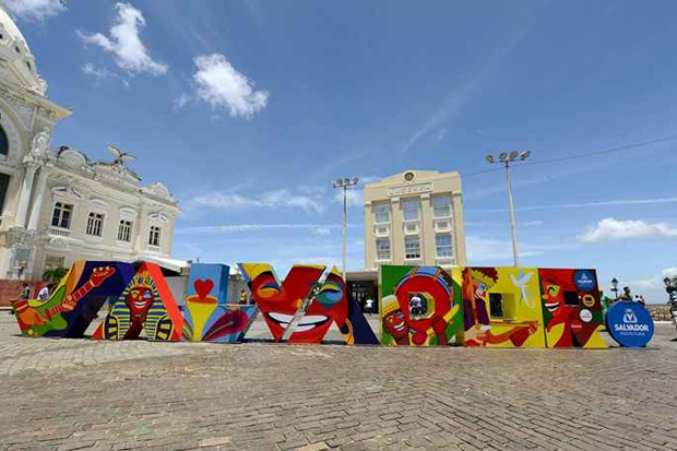 Feito com placas de aço, o letreiro é inspirado em Amsterdã e Nova York. Em datas comemorativas, fica de cara nova. Em agosto de 2014, foi decorado em homenagem ao escritor João Ubaldo Ribeiro. Em fevereiro de 2015, ganhou desenhos alusivos aos 30 anos da axé music. Com 16m de comprimento e 2m de altura, o letreiro tem várias versões espalhadas por Salvador — já passou pelo Dique do Tororó, Praça Municipal, Farol da Barra e ficou de frente para a Baía de todos os santos no réveillon.