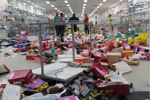 Assim como a loja de calçados, outros 100 estabelecimentos comerciais tiveram as portas quebradas, vitrines destruídas e todo estoque levado pelos saqueadores. Nas vias ao redor do Centro, caminhões foram abordados e tiveram as mercadorias roubadas.