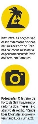 Quem passeia por praias do Litoral Sul costuma fazer isso acompanhado de, pelo menos, uma máquina fotográfica. Os celulares e as redes sociais estimulam ainda mais a vontade de fotografar os pontos turísticos espalhados pela costa pernambucana. O letreiro instalado em Porto de Galinhas, inaugurado há pouco dois meses, tornou-se o mais novo ponto para turistas e pernambucanos orgulhosos de sua mais famosa praia tirarem fotos. O universitário Lucas Lima, 21, não resistiu ao equipamento de três metros de altura com o nome da praia nas cores vermelho, amarelo, verde e azul. Ao se deparar com as letras coloridas, tirou a câmera imediatamente da bolsa e fotografou as amigas Layla Silva e Natália Souza, ambas de 18 anos. “Sou do Recife, mas ainda não tinha visto o letreiro. Gostei muito da ideia. Rende boas fotos”, destacou.