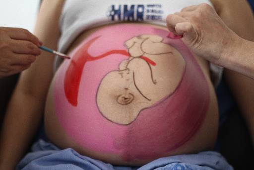 Depois de quase uma hora sentada, sem emitir muitas palavras, a enfermeira Marcela Guimarães abaixou o olhos para o próprio ventre. Circundada de tinta rosa e roxa, cores escolhidas por ela, estava a pequena Malu. Marcela, 29 anos, começou a chorar. Em uma manhã de quarta-feira, aos oito meses de gestação, havia se concebido mãe pela força da arte. Assim como aconteceu com ela, outras mulheres estão passando pela experiência de transformar o período final da gestação em momento de descoberta e conexão com os filhos, por meio da técnica de arte gestacional, oferecida pelo Hospital da Mulher do Recife.Difundida no mundo pela parteira mexicana Naoli Vinaver e no Brasil pela artista Itaiana Battoni, a técnica de pintura do bebê na barriga das mães está sendo aplicada no HMR como método de indução e relaxamento, para aquelas mulheres que chegam em trabalho inicial de parto na unidade. A metodologia consiste em desenhar, com tintas atóxicas específica para pele, lápis de olho e pincéis, a criança na exata posição em que ela se encontra dentro da barriga da mulher.