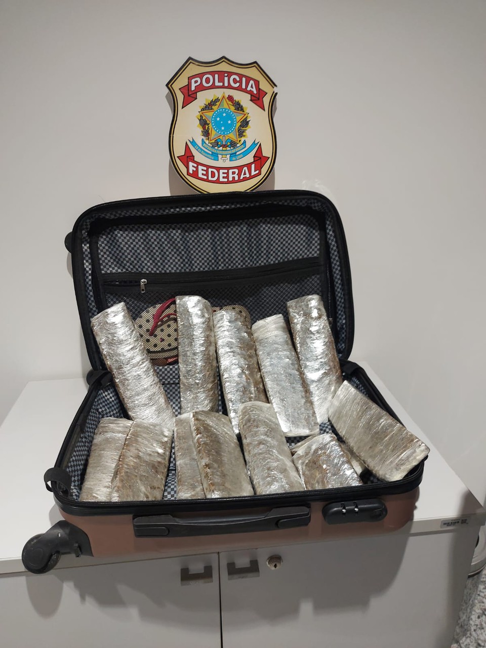 Segundo a Polícia Federal (PF), a passageira foi presa e autuada em flagrante ao desembarcar em voo doméstico, com a droga na bagagem de mão, no domingo (26).