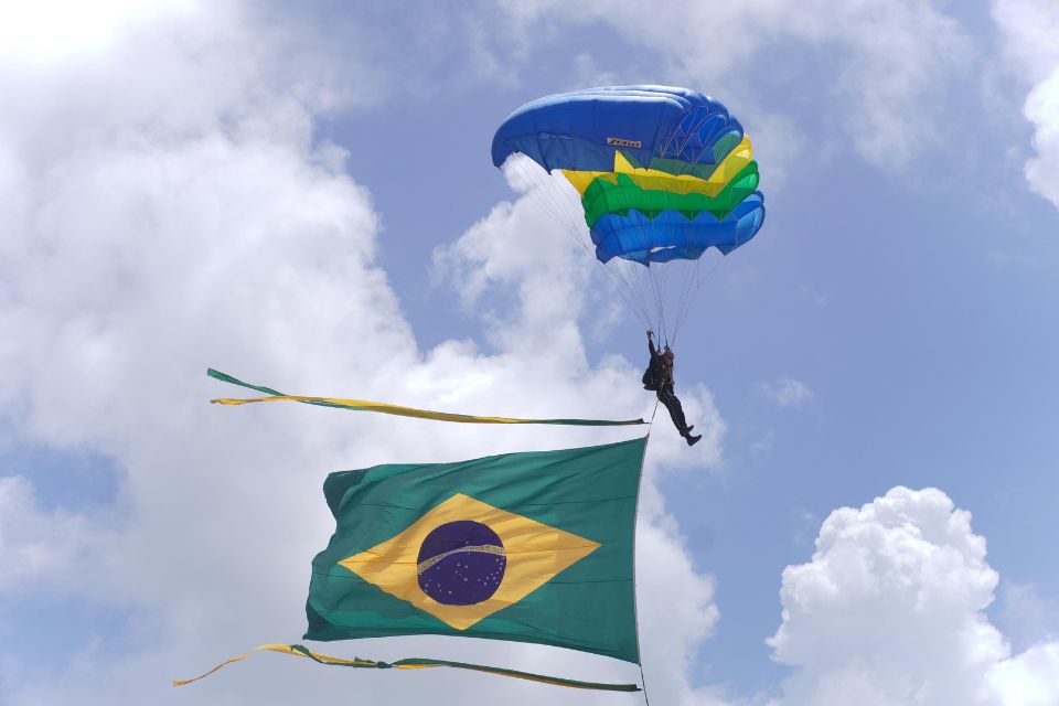 O chefe da equipe de salto livre do Exército, Leonardo Vilhena, destacou a complexidade e a beleza do paraquedismo.