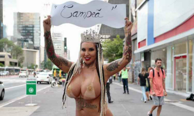 Sabrina Boing Boing desfila nua no meio da rua após vitória da Tatuapé