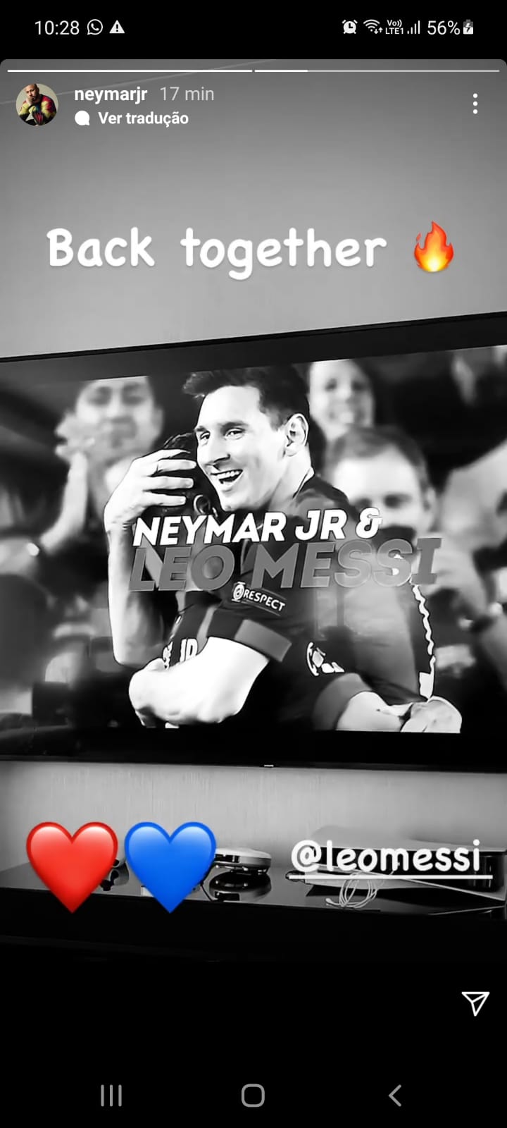 Em rede social, Neymar comemora 'reencontro' com Messi no PSG: 'juntos novamente'
