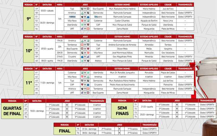Com Atlético x Cruzeiro no dia 4 de março, FMF divulga tabela do Campeonato Mineiro