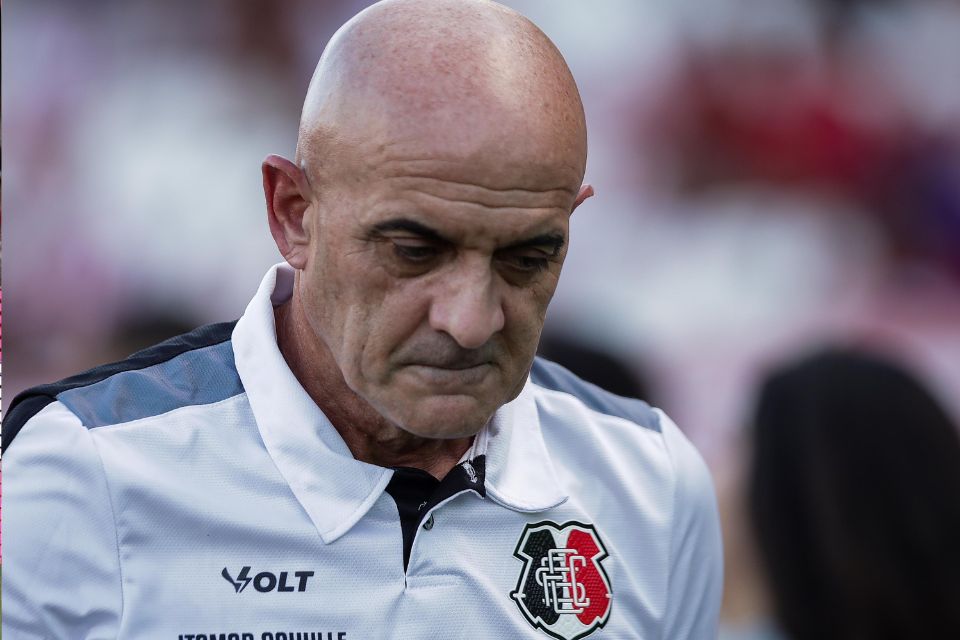 O técnico do Santa Cruz, Itamar Schülle, seguiu a linha da direção do clube e focou a derrota por 2 a 1 para o Náutico nos Aflitos, neste sábado (25), na arbitragem. Porém, o protesto foi diferente. [SAIBAMAIS]Diferentemente dos diretores, que soltaram o verbo contra a árbitra Deborah Cecília e a Federação Pernambucana de Futebol, o comandante coral preferiu o silêncio.