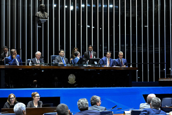 Plenário do Senado Federal durante sessão deliberativa ordinária. Ordem do dia. Na pauta, o projeto de lei complementar que regulamenta a segunda parte da reforma tributária. O PLP 108/2024, de autoria do Executivo federal, define regras para os tributos criados pela reforma (Emenda Constitucional 132): o Imposto sobre Bens e Serviços (IBS), que vai substituir o ICMS nos estados e o Imposto Sobre Serviços nos municípios; e a Contribuição sobre Bens e Serviços (CBS), que terá abrangência federal. Mesa: senador Renan Calheiros (MDB-AL); presidente do Senado Federal, senador Davi Alcolumbre (União-AP); secretário-geral da Mesa do Senado Federal, Danilo Augusto Barboza de Aguiar; relator do PLP 108/2024, senador Eduardo Braga (MDB-AM) senador Omar Aziz (PSD-AM). Foto: Waldemir Barreto/Agência Senado (Waldemir Barreto)