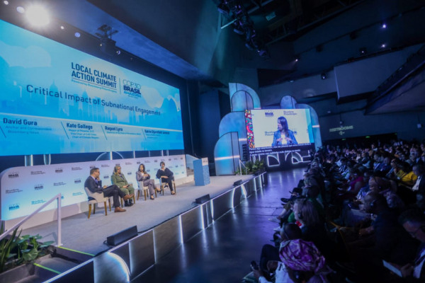 O Local Climate Action Summit reuniu representantes de governos locais e nacionais para discutir políticas públicas. Raquel integrou o painel "Impacto Crítico da Diplomacia Subnacional"