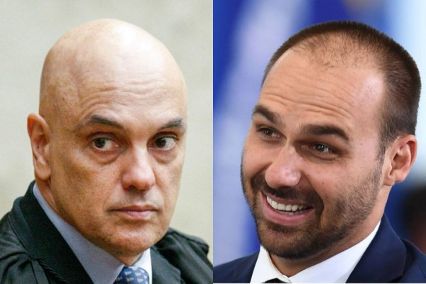 Alexandre de Moraes (à esq.) e Eduardo Bolsonaro (à dir,) (Sophia Santos/STF e EVARISTO SA/AFP)
