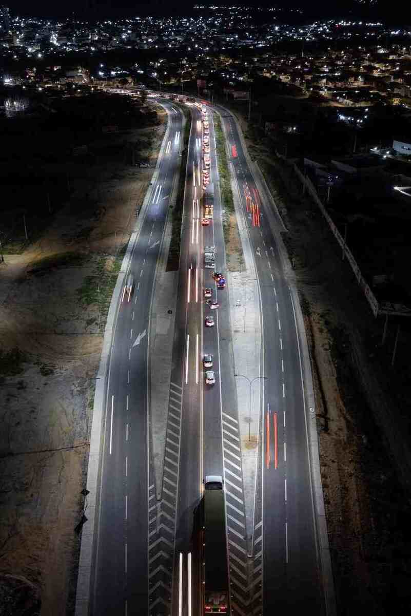 A intervenção na BR-104 incluiu a duplicação da via e a requalificação da infraestrutura, com serviços de pavimentação, drenagem e sinalização.