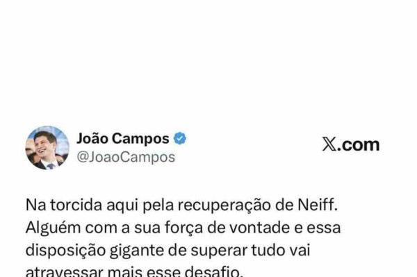 Em publicação nas redes sociais, João Campos escreveu: “Na torcida aqui pela recuperação de Neiff. Alguém com a sua força de vontade e essa disposição gigante de superar tudo vai atravessar mais esse desafio. Que Deus esteja no comando, cuidando de cada detalhe, e que você volte logo, firme e bem, pra junto da sua família, dos amigos e de todo mundo que tá torcendo por você”.