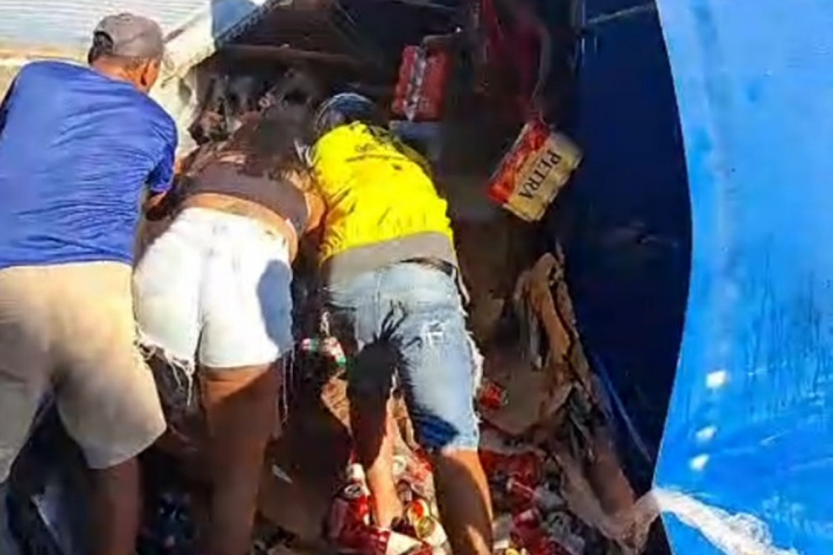 População saqueou fardos de cerveja e refrigerante. (Foto: Reprodução/Redes sociais)