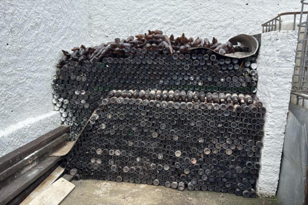 Também foram encontradas garrafas de marcas conhecidas que seriam possivelmente reutilizadas para comercialização fraudulenta, configurando falsificação de marca e colocando em risco a saúde dos consumidores.