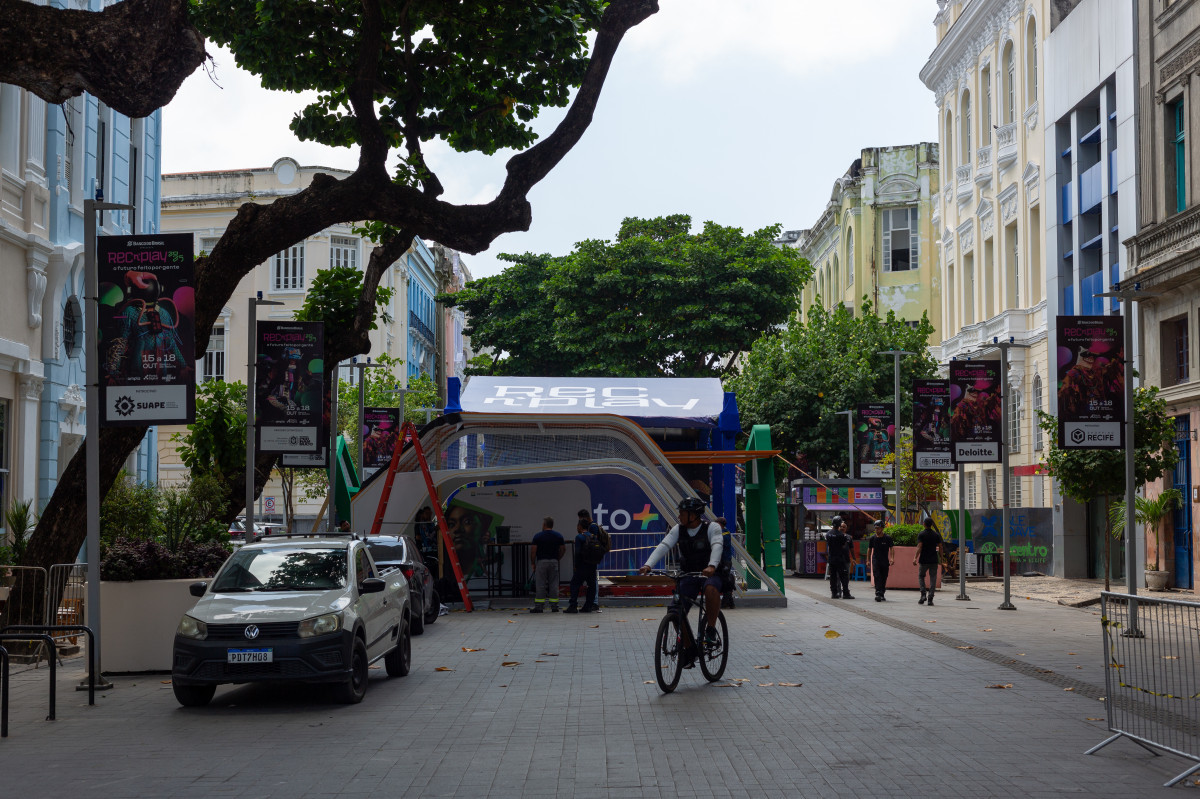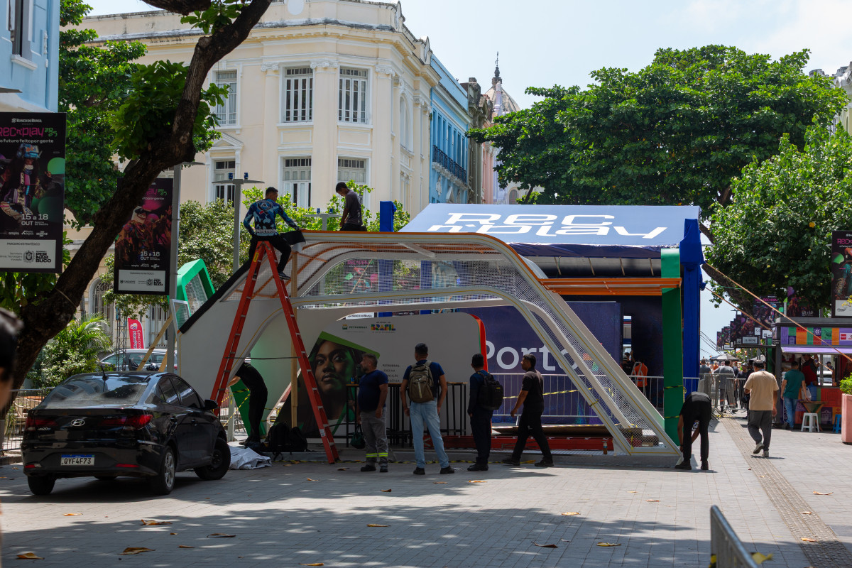 Recife, PE, 13/10/2025 - REC'N PLAY - Imagens da montagem das estruturas do Rec'n Play no Recife Antigo. (Rafael Vieira)