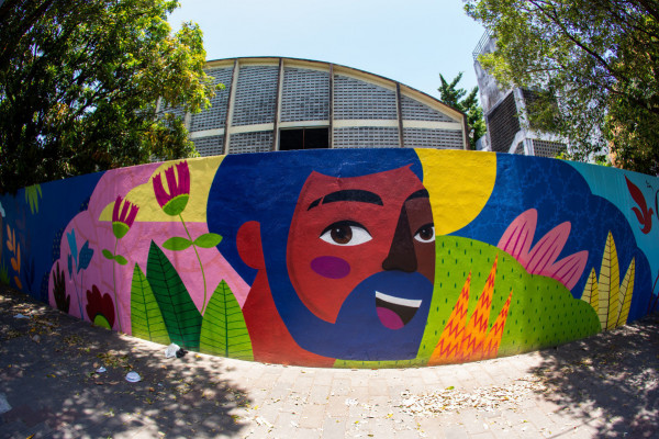 Entre cores, formas e tipografias características do artista, o mural também traz frases do Papa Francisco, como “Tudo está interligado”, “A beleza é a porta de entrada para a consciência ecológica” e “O mundo canta um Amor infinito, como não cuidar dele?”. As mensagens reforçam que todos os seres e o planeta estão conectados, e que a cidade é também um espaço de aprendizado e convivência, uma extensão viva da universidade. Nesse diálogo entre arte e fé, ecoa a visão do Papa sobre consciência ambiental e responsabilidade coletiva.