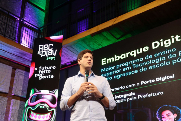 “É uma alegria estar aqui e poder participar desse painel no REC’n’Play, falar de algo que é muito valioso para todos nós, que é o Embarque Digital, o maior programa de formação no ensino superior de tecnologia que uma cidade brasileira faz. A gente faz uma agenda muito forte na educação, porque de fato você consegue transformar uma cidade. Observando o gráfico, a gente nota a curva crescente que distancia o Recife das demais cidades. E é esse programa que tem ajudado a praticamente dobrar a renda média de uma família em dois anos e meio. Tudo isso através da Educação”, disse o prefeito.