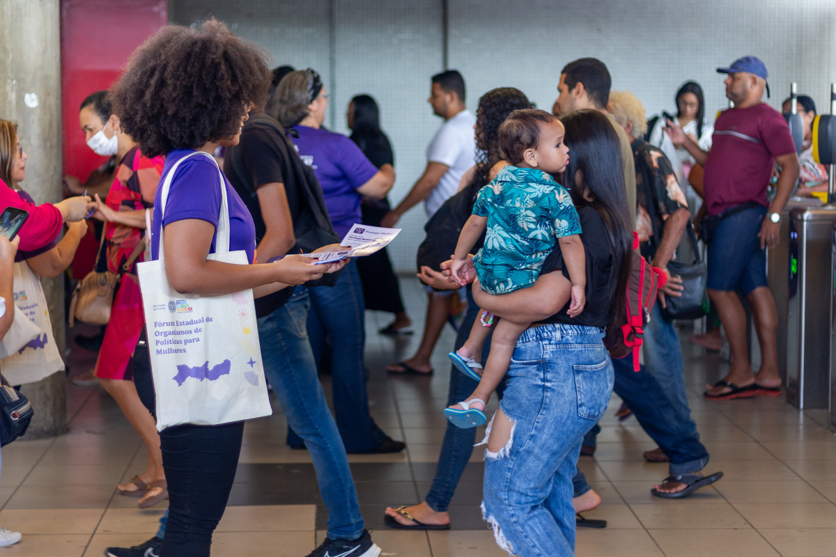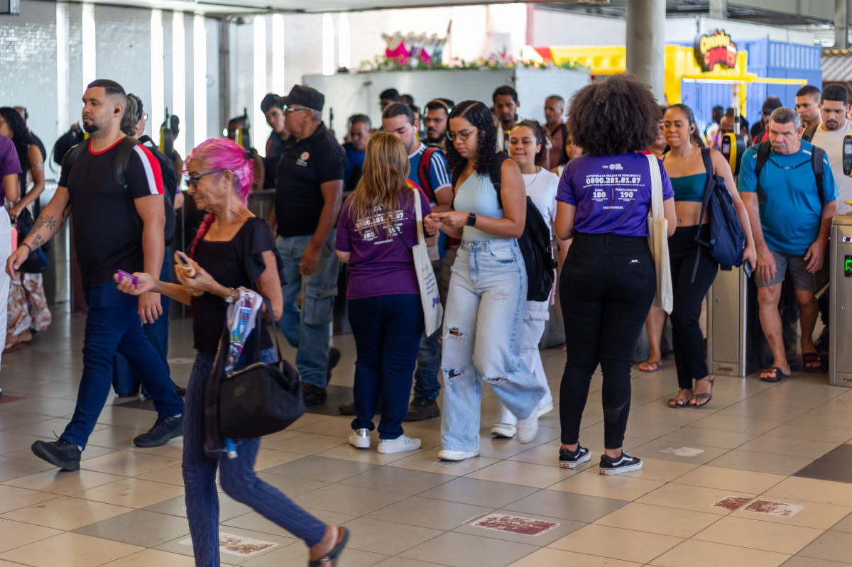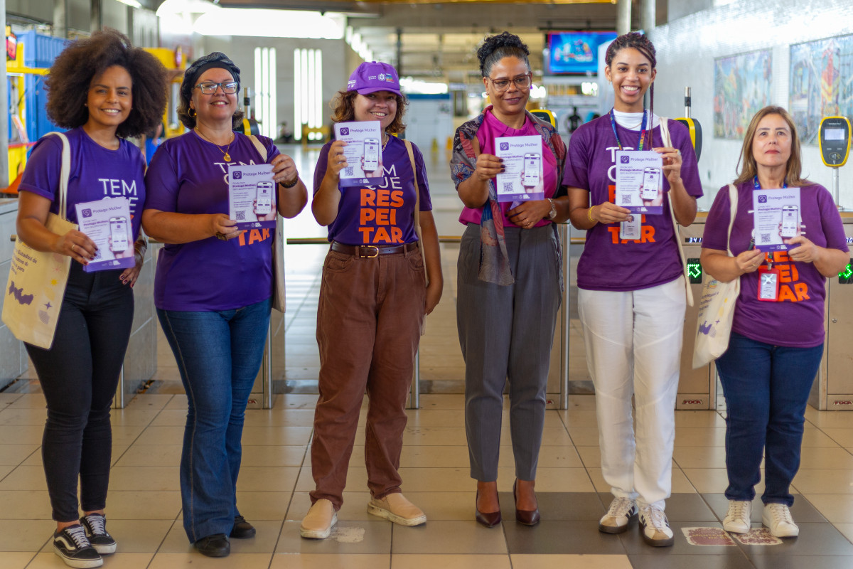 Desde as primeiras horas da manhã, equipes da Secretaria estiveram na estação de metrô do Recife distribuindo materiais informativos e orientando as passageiras sobre o uso do sistema.