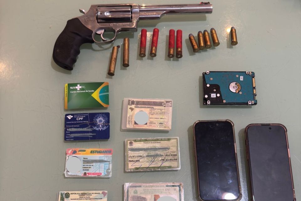 Com os suspeitos foram apreendidos celulares, um carro, uma revólver com munições de diferentes calibres e documentos como: carteira de Identidade, CPF, Carteira de Habilitação (CNH) e Cartão do Sistema Único de Saúde (SUS).