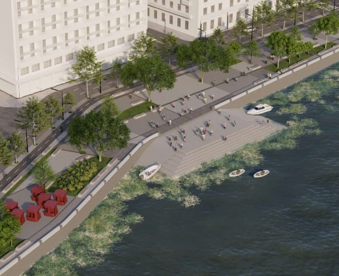 A relação com o rio também é abordada pela proposta através da construção de duas orlas, uma na Rua do Sol e outra na Avenida Martins de Barros. Quanto ao comércio local, o projeto fala em rearranjar os locais ocupados por comerciantes e ambulantes, apontando necessidade de mudança dos pontos ocupados por alguns trabalhadores que atuam no local.