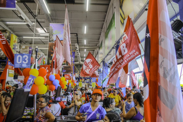 Movimento por moradia ocupa supermercado no Recife e cobra doação de cestas básicas