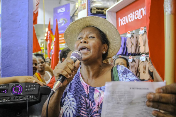 "A falta de emprego, a falta de alimentação adequada, de frutas e verduras, de comida de qualidade, infelizmente é uma realidade da maioria da nossa população", declarou uma das lideranças do MLB durante o protesto no Recife.