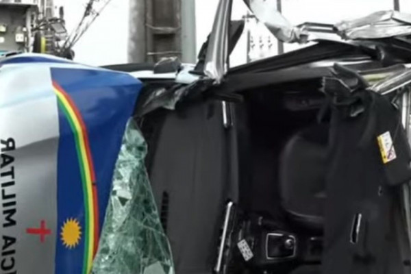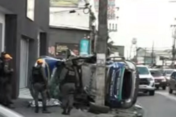 Segundo informações, o carro onde estavam os policiais capotou e bateu em outro veículo, uma Spin prata.