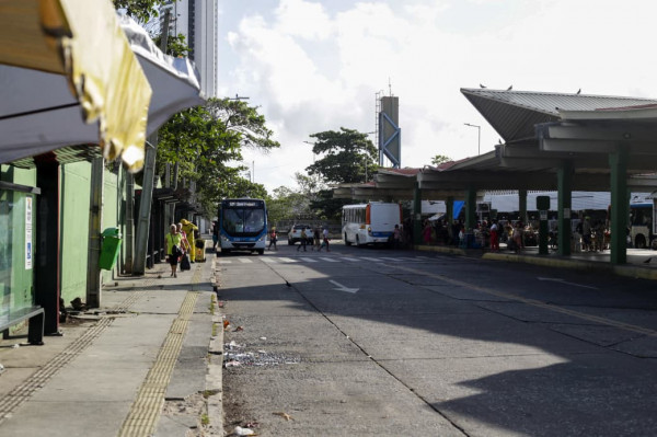 Passageiros embarcam em ônibus no Cais Santa Rita (Foto: Crysli Viana/DP Foto)