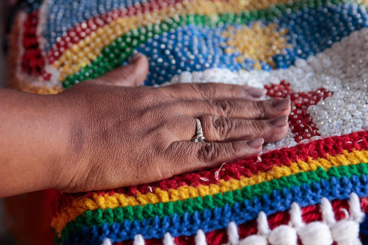 “Quando eu me apaixonei pelo bordado, comecei fazendo gola de maracatu, e depois aprendi a fazer estandarte. O estandarte é uma obra de arte. Eu me apaixonei por essa arte porque acho que a gente merece protagonismo. É uma arte que não aparece muito, mas as pessoas começam a procurar, a querer saber quem são os artista”, complementa Manoel.