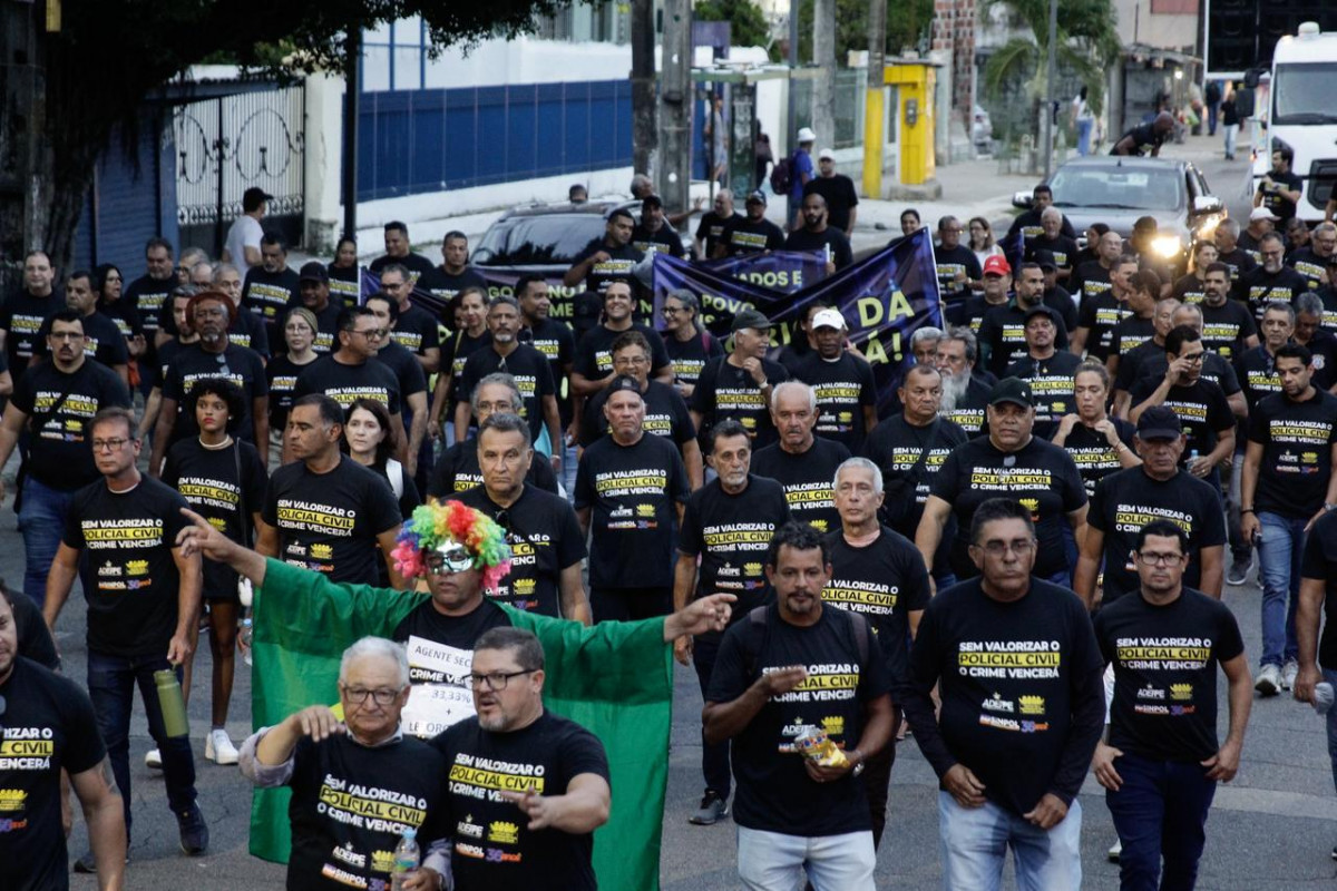Policiais civis realizam protesto no Recife por carga horária, reajuste salarial e regulamentação da Lei Orgânica