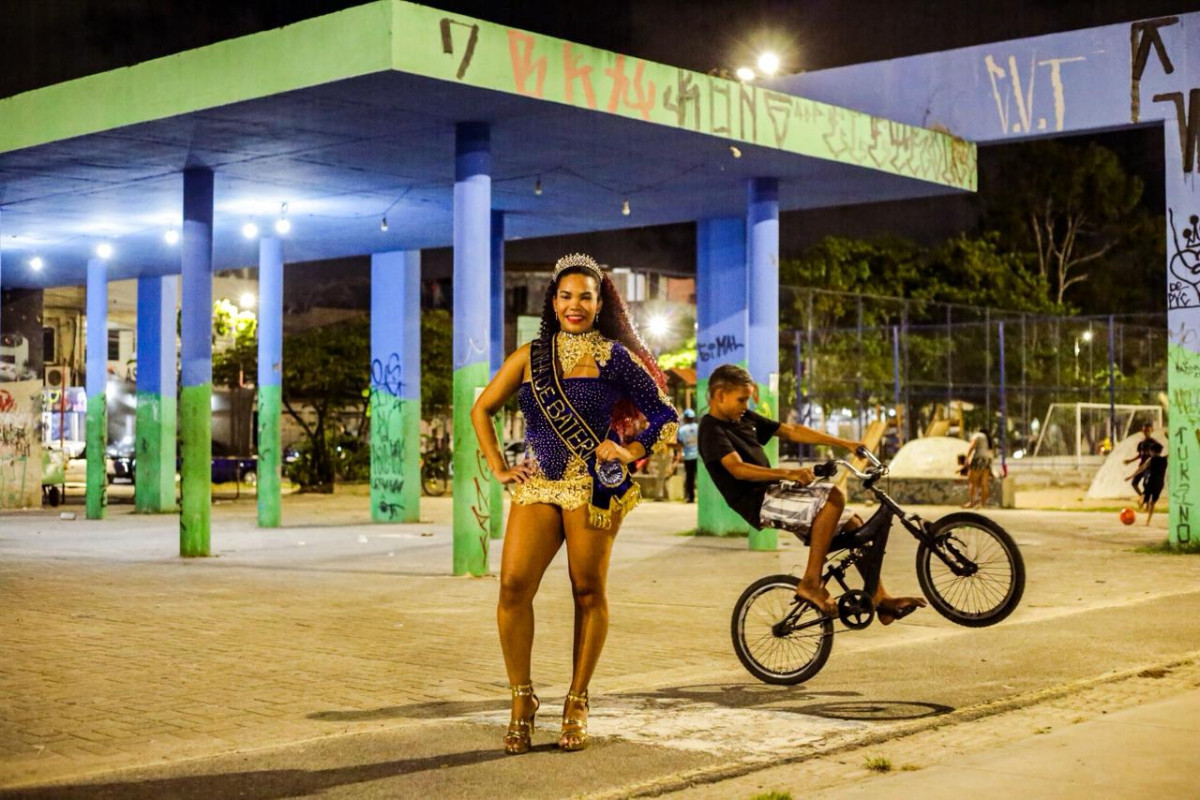 Poucos momentos antes do ensaio da escola de samba Mocidade dos Torrões, uma menina fala ao pai: “Quando eu crescer quero ser igual a ela e usar essa roupa”. Na frente dela estava a rainha de bateria Kelly Pereira, de 28 anos, que vive um sonho coletivo e serve de inspiração para mulheres negras de Pernambuco. O cargo é apresentado para o público apenas na noite de desfile, mas é sustentado por um ano inteiro de trabalho e rotina de maternidade, vida profissional e a realidade da periferia da Zona Oeste do Recife.